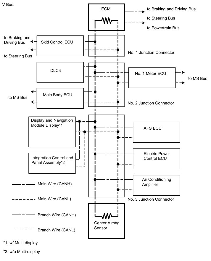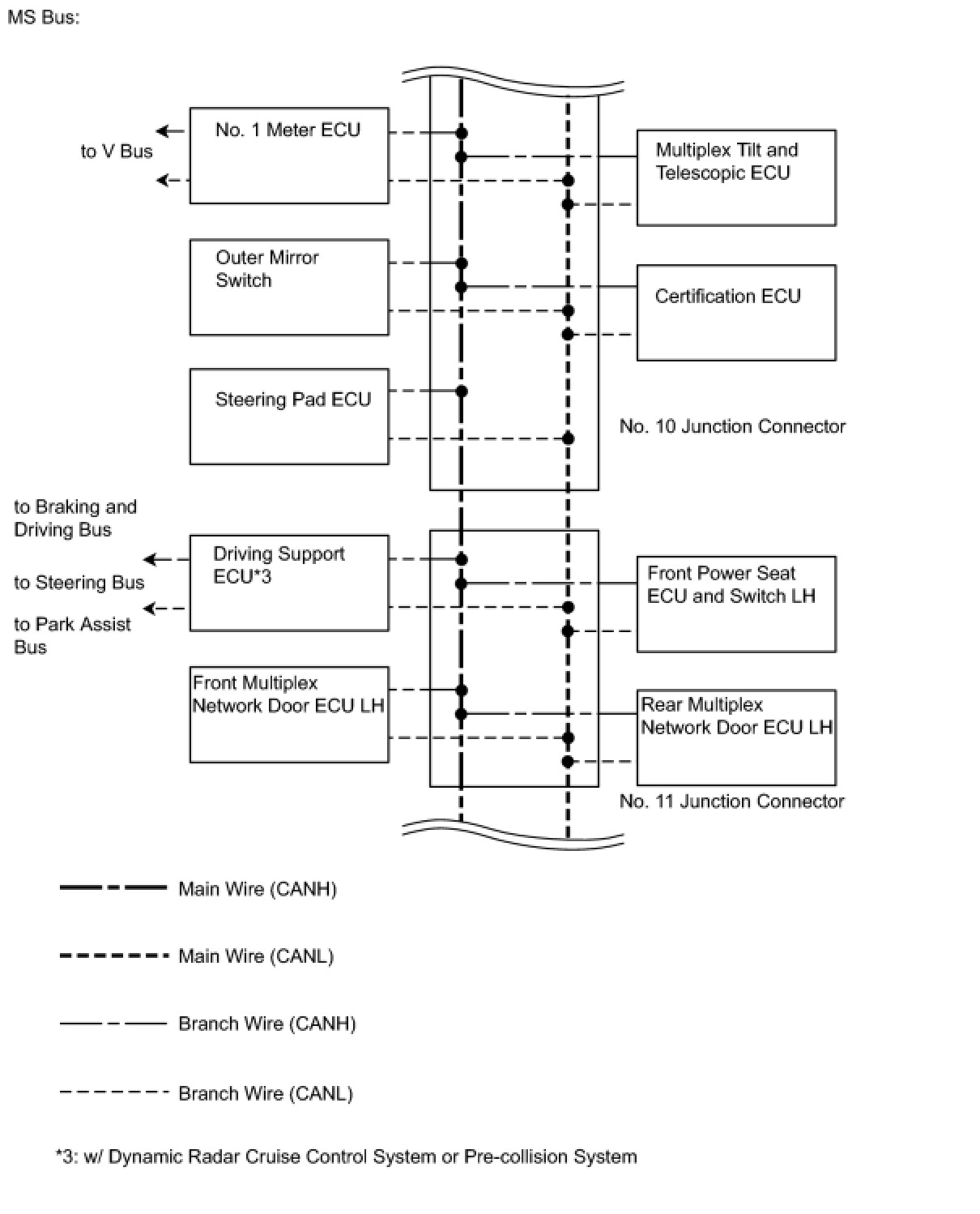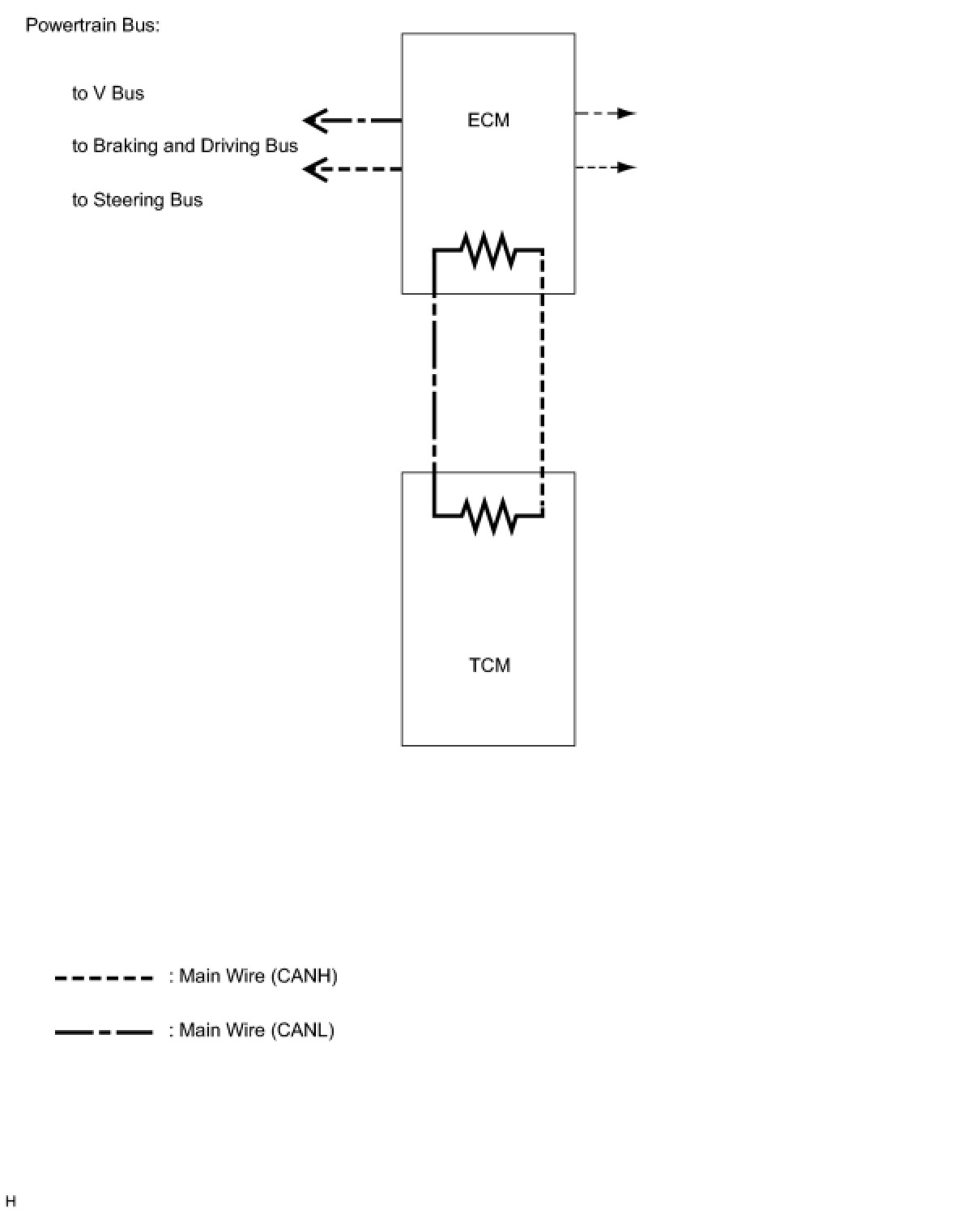 (a) The V bus, steering bus, braking and driving bus, parking assist bus, powertrain bus and MS bus each have termination circuits with 120 Ohms x 2 of resistance. High speed communication at 500 kbps and 250 kbps is possible.