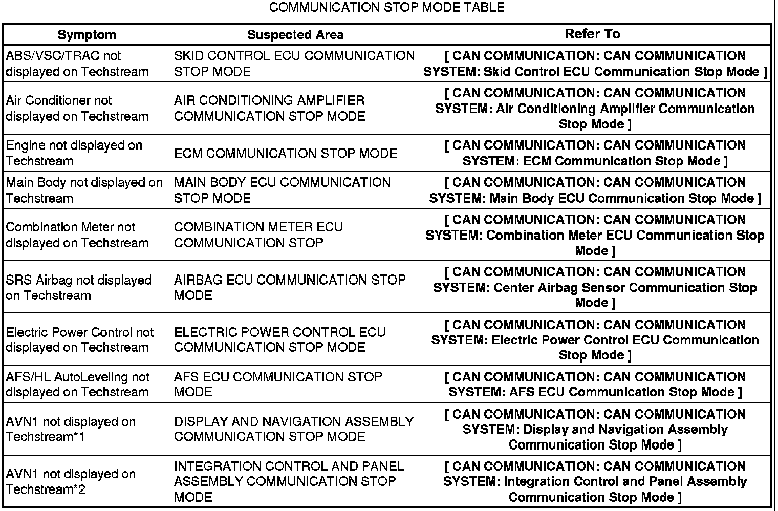 CAN COMMUNICATION: CAN COMMUNICATION SYSTEM: PROBLEM SYMPTOMS TABLE