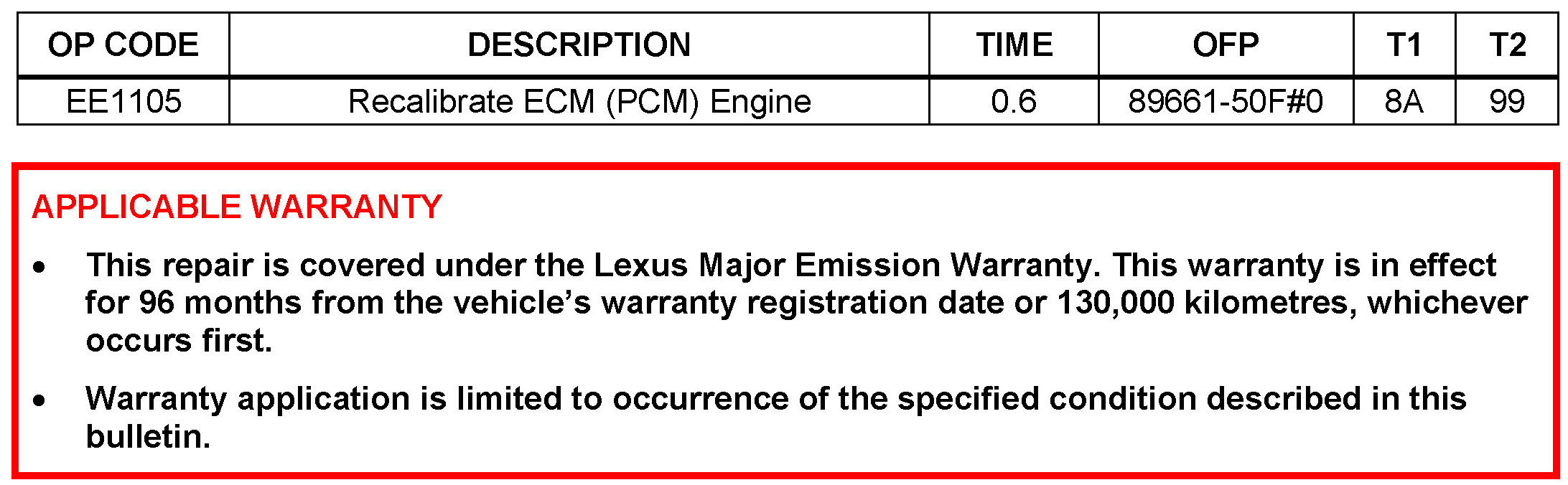 Follow the procedures outlined in TSB No. 2401, "Techstream ECU Flash Reprogramming Procedure", and flash the ECM (PCM) with the NEW calibration file update.