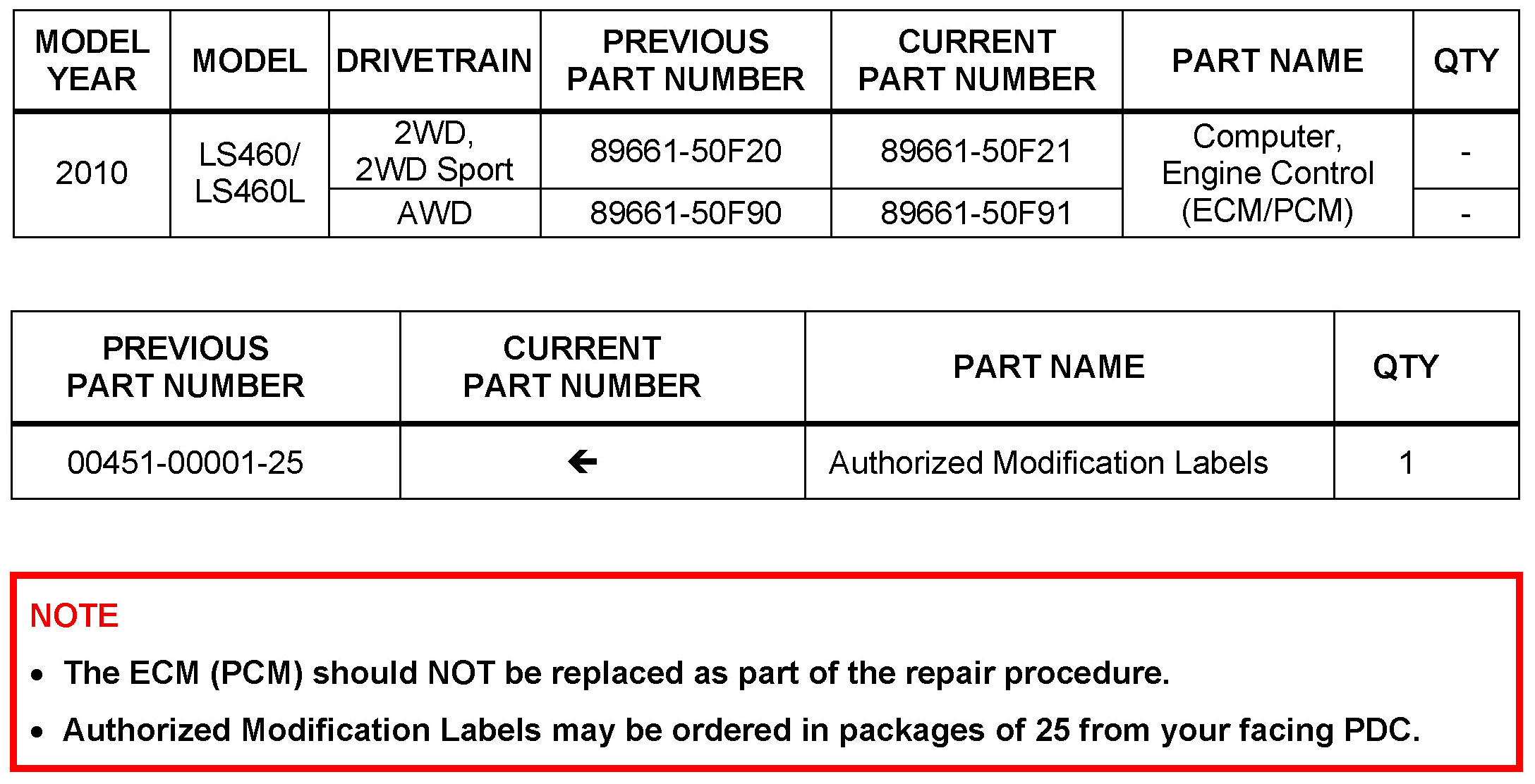 - ECM part number [Refer to the Parts Information section for the CURRENT PART NUMBER]