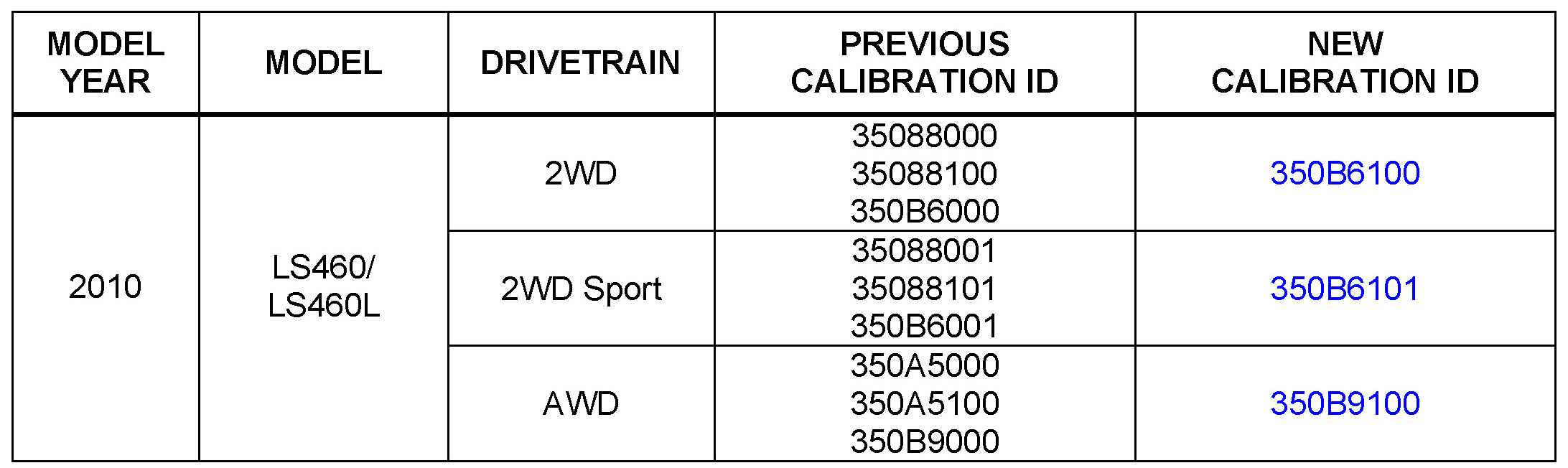 - Calibration ID(s) [Refer to the Calibration Information chart for the NEW CALIBRATION ID]