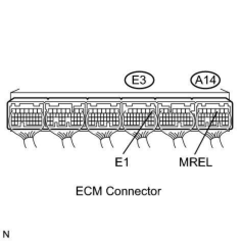 When the engine switch is turned on (IG), the battery voltage is applied to terminal IGSW of the ECM. The ECM MREL output signal causes a current to flow to the coil, closing the contacts of the EFI relay (EFI MAIN2) and supplying power to terminal +B and +B2 of the ECM.