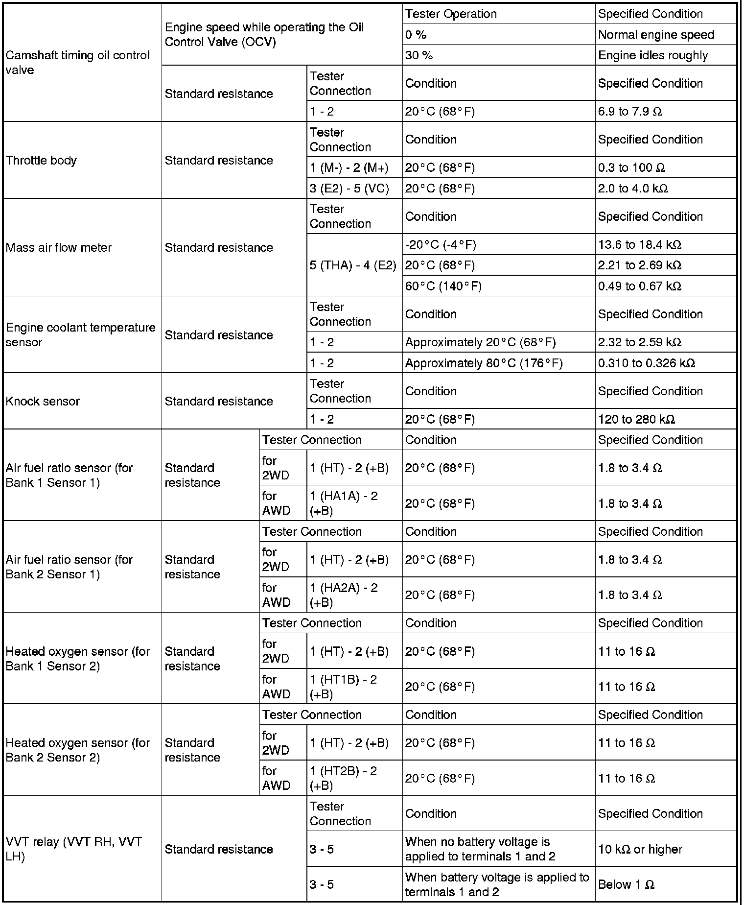 SERVICE SPECIFICATIONS: 1UR-FSE ENGINE CONTROL SYSTEM: SERVICE DATA