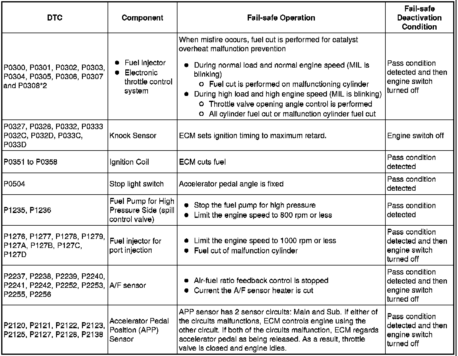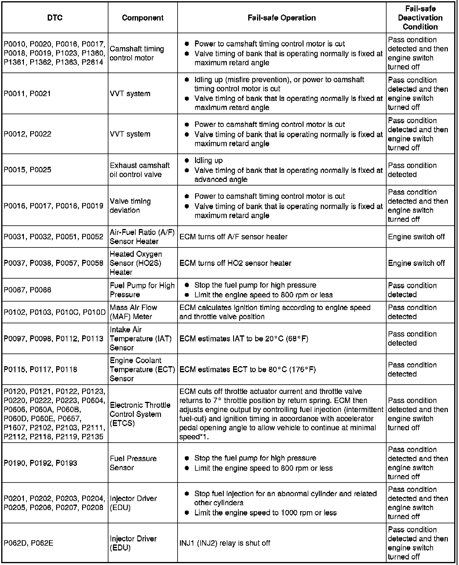If any of the following DTCs are set, the ECM enters fail-safe mode to allow the vehicle to be driven temporarily.