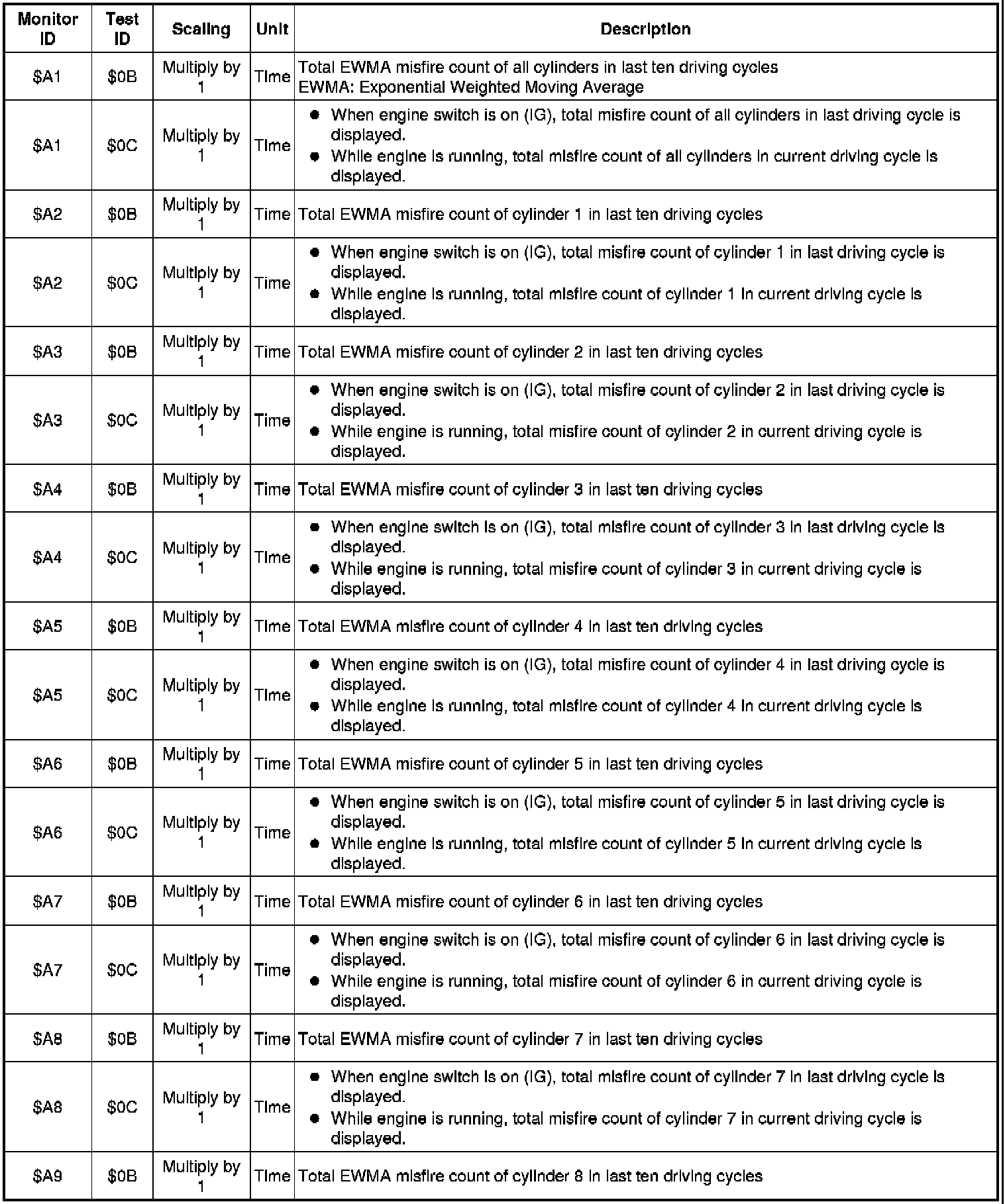 If you use a generic scan tool, multiply the value by the scaling value listed below.