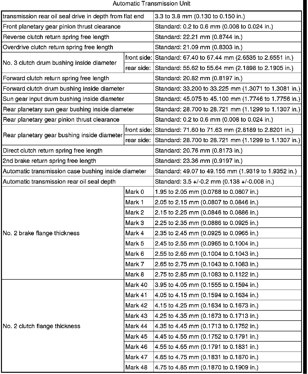 SERVICE SPECIFICATIONS: AA80E AUTOMATIC TRANSMISSION: SERVICE DATA