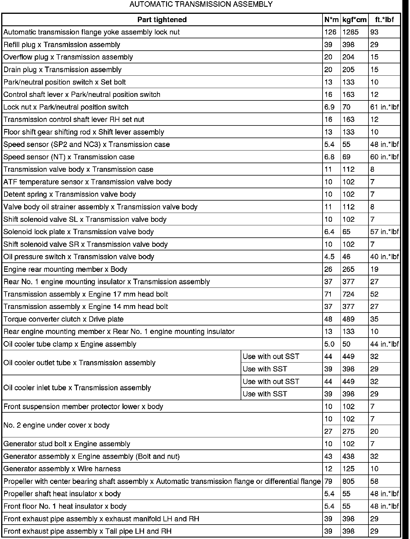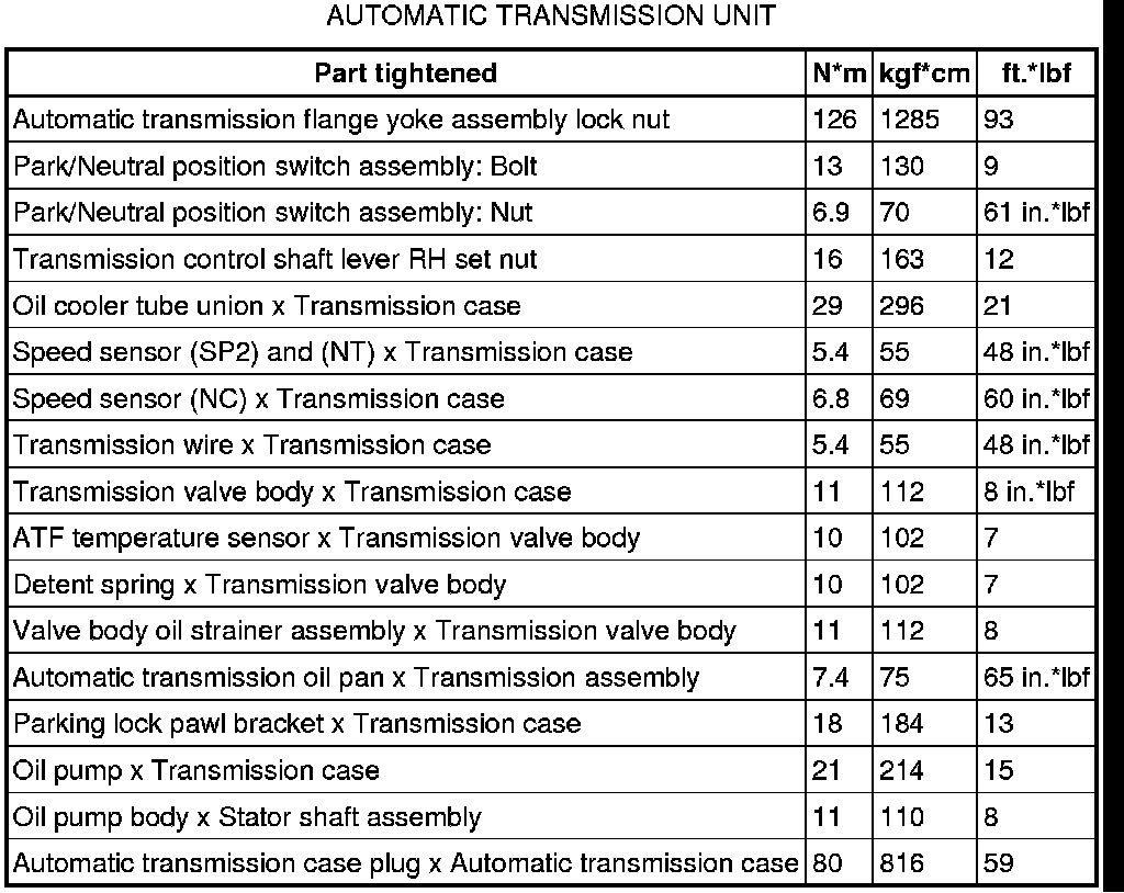 SERVICE SPECIFICATIONS: AA80E AUTOMATIC TRANSMISSION: TORQUE SPECIFICATIONS