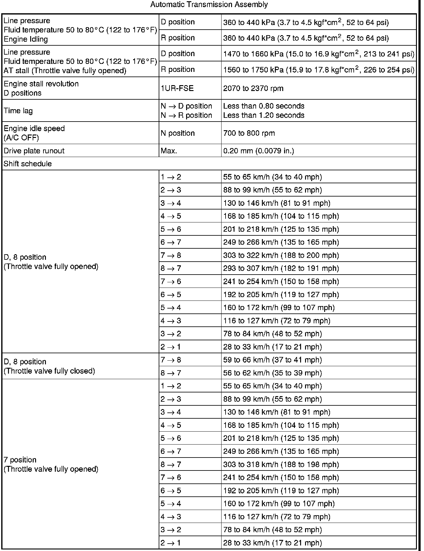 SERVICE SPECIFICATIONS: AA80F AUTOMATIC TRANSMISSION: SERVICE DATA