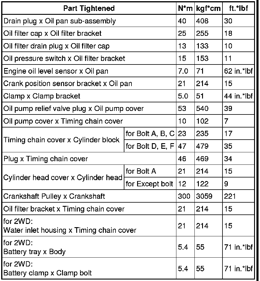 SERVICE SPECIFICATIONS: 1UR-FSE LUBRICATION: TORQUE SPECIFICATIONS