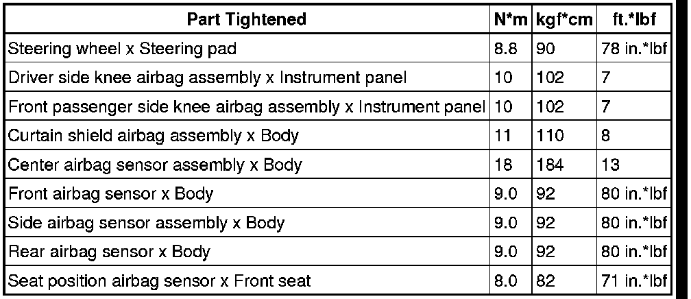 SERVICE SPECIFICATIONS: SUPPLEMENTAL RESTRAINT SYSTEM: TORQUE SPECIFICATIONS