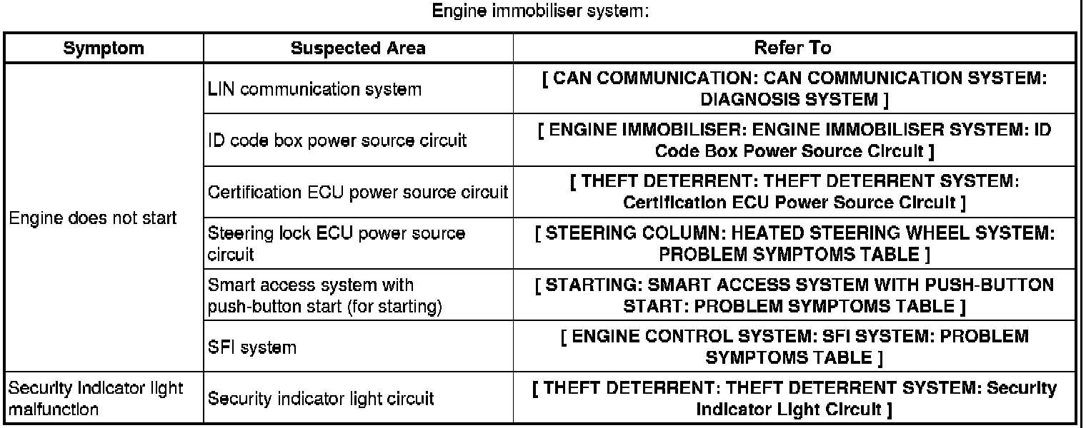 ENGINE IMMOBILISER: ENGINE IMMOBILISER SYSTEM: PROBLEM SYMPTOMS TABLE