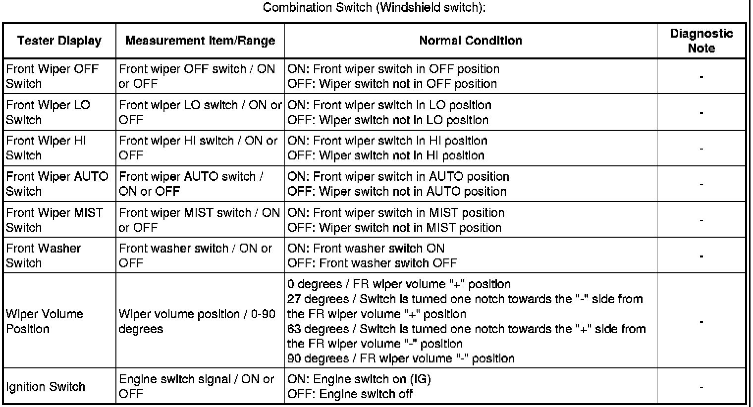 WIPER AND WASHER: WIPER AND WASHER SYSTEM: DATA LIST / ACTIVE TEST