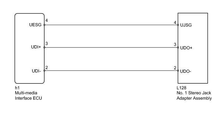 The No. 1 stereo jack adapter assembly sends the sound data signal of an external device to the multi-media interface ECU through this circuit.