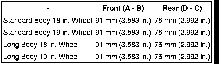 If the dimension of the front suspension lower arm changes 2 mm (0.0787 in.), the camber will change approximately 15' (0.25°).