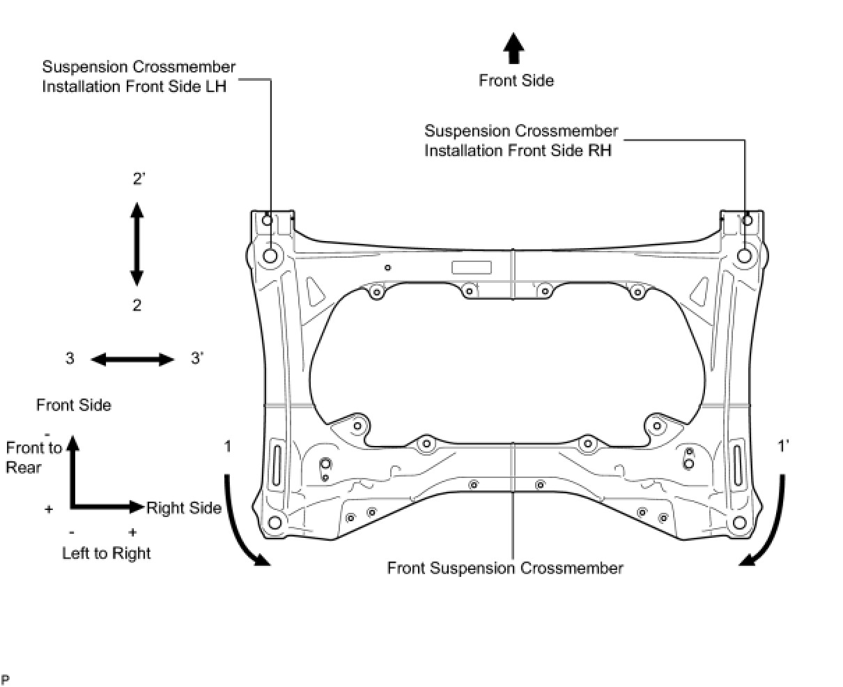 Relative alignment change based on amount of suspension crossmember movement in each direction: