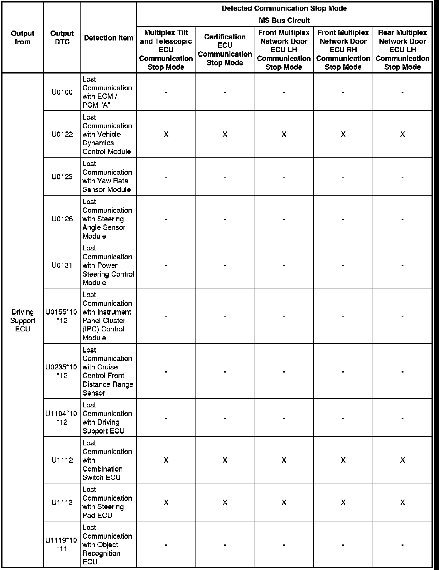 * *12: Refer to the Diagnostic Trouble Code Chart CAN Communication System.