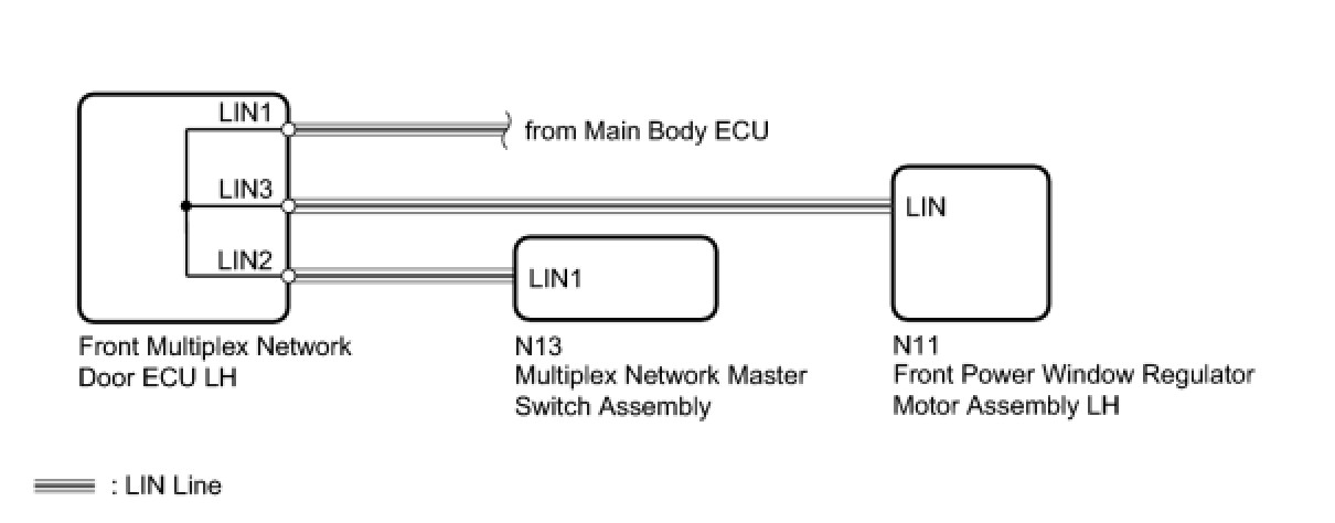 * ECU in the power window regulator motor determines that the power window regulator motor has not been initialized.