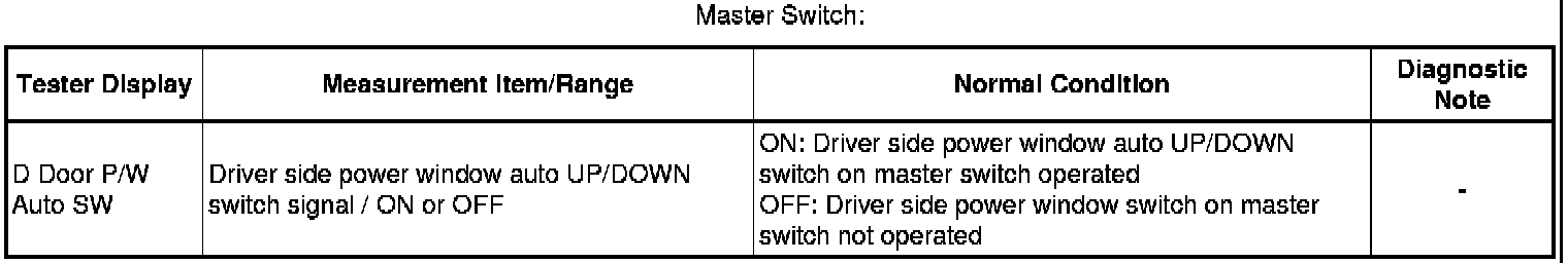 - Driver Side Power Window Auto Up / Down Function does not Operate with Power Window Master Switch