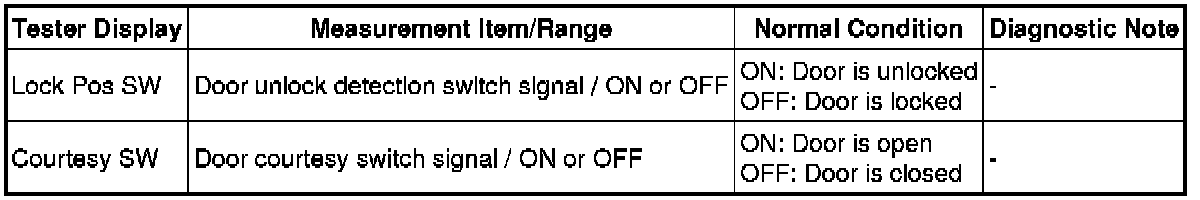DOOR LOCK: POWER DOOR LOCK CONTROL SYSTEM: DATA LIST / ACTIVE TEST