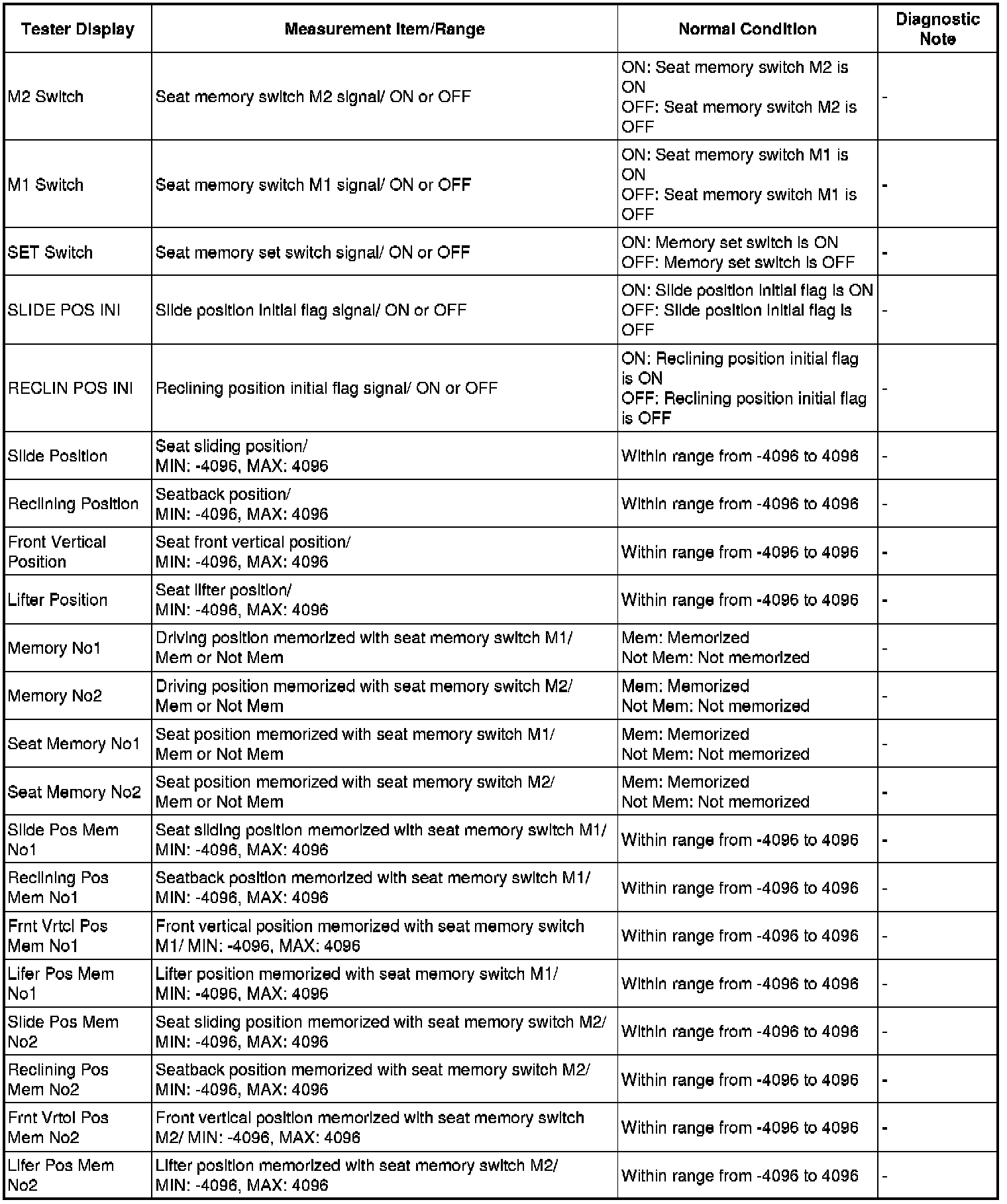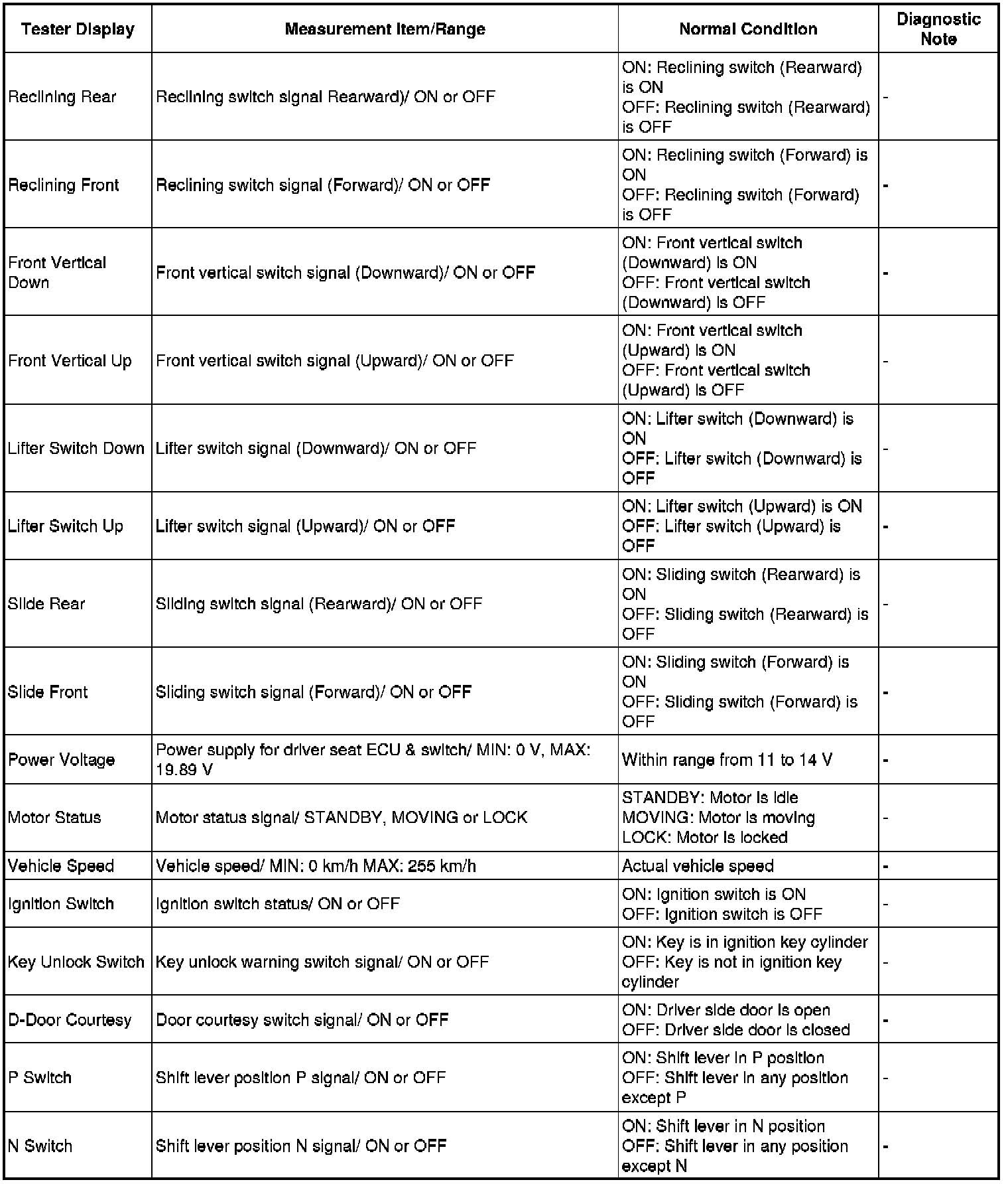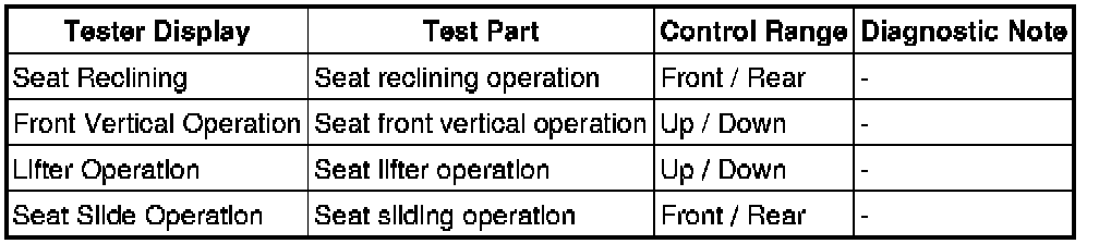 SEAT: FRONT POWER SEAT CONTROL SYSTEM: DATA LIST / ACTIVE TEST