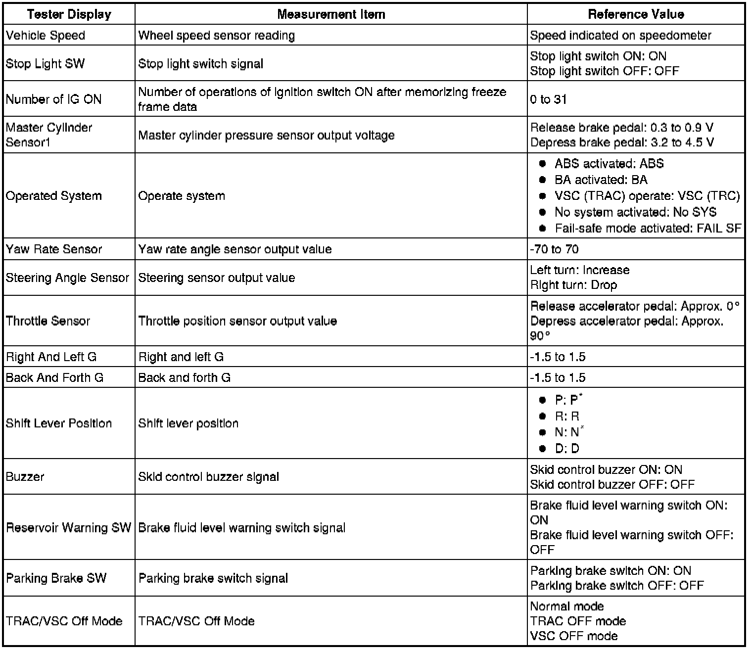 * When a DTC is detected or the ABS operates, the skid control ECU stores the current vehicle (sensor) state as freeze frame data.