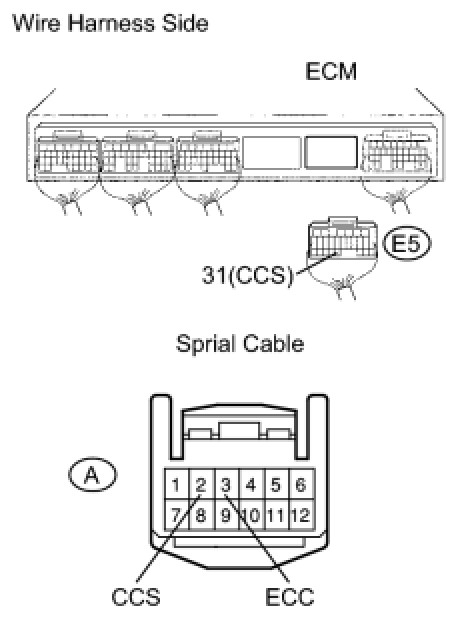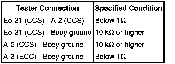 The battery supplies positive (+) battery voltage to the cruise control main switch. Then terminal CCS of the ECM receives the voltage according to the switch condition.