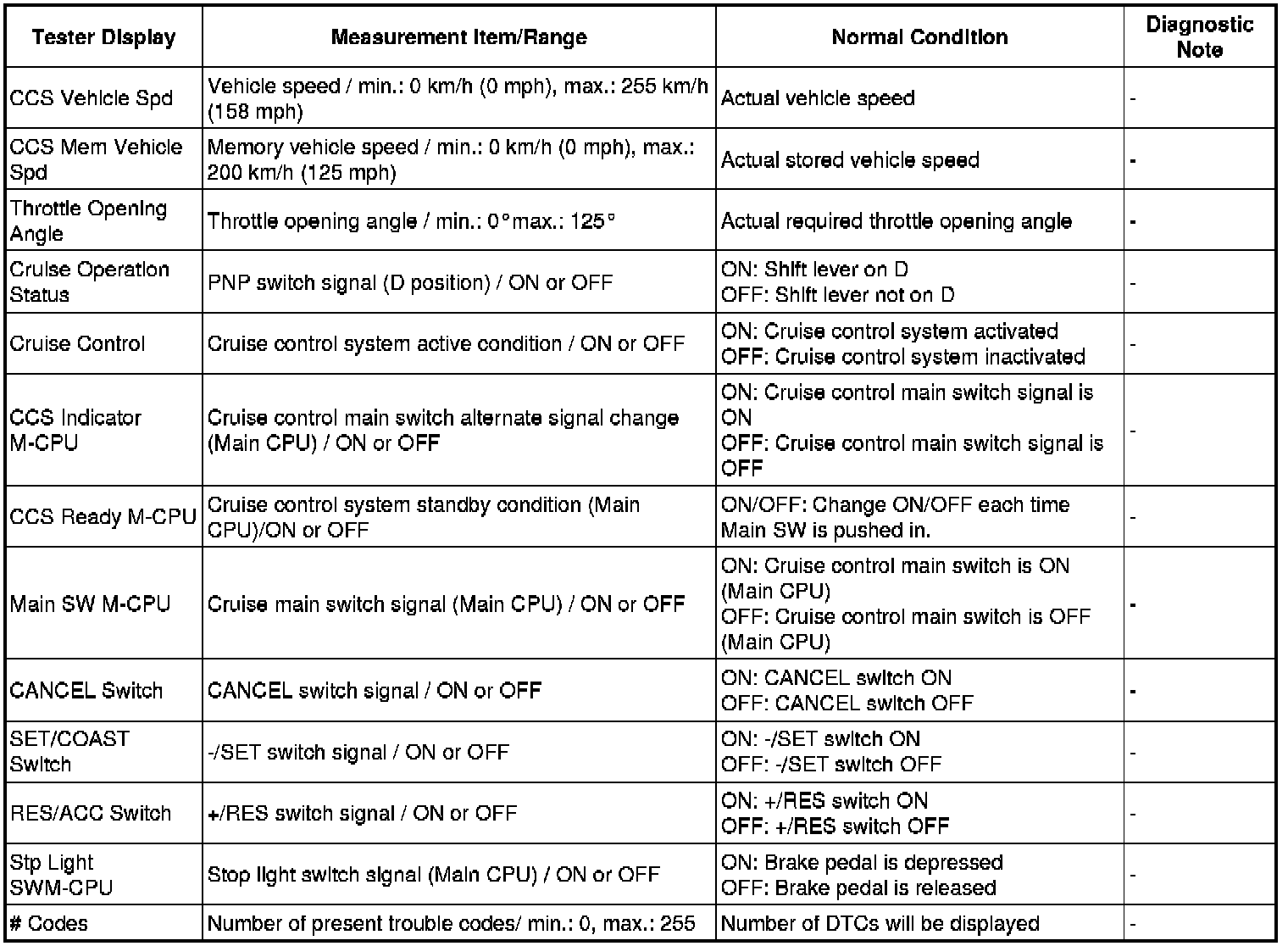 CRUISE CONTROL: CRUISE CONTROL SYSTEM: DATA LIST / ACTIVE TEST