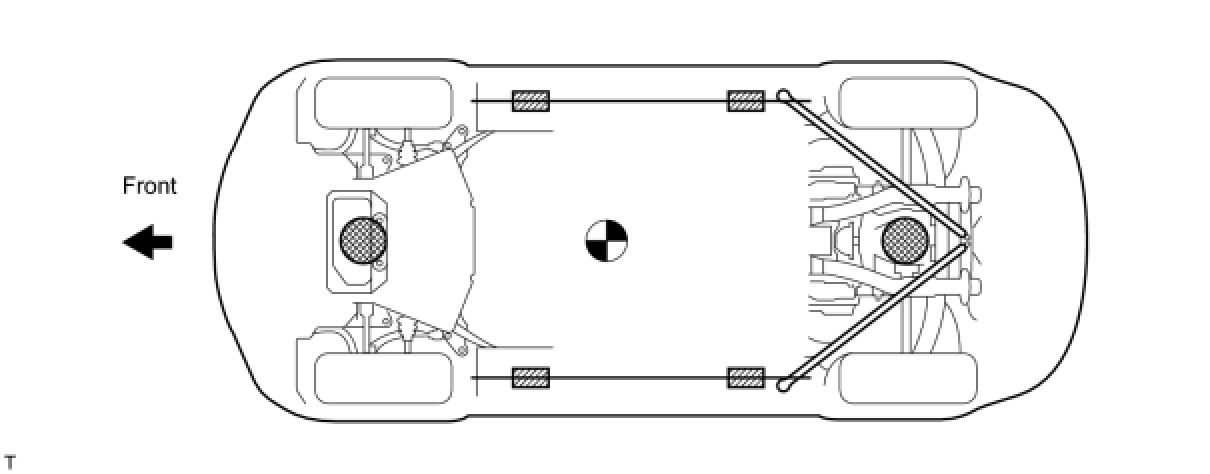 (e) Set the vehicle on the lift as level as possible. Then match the groove of the cradle to the safety stand support locations.