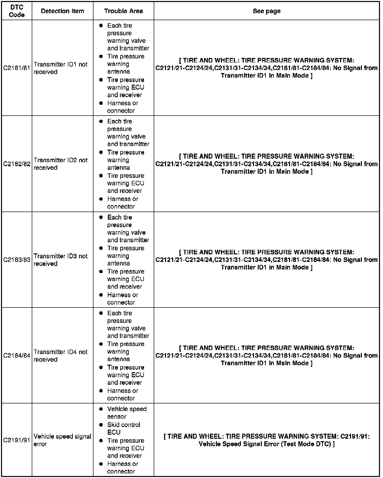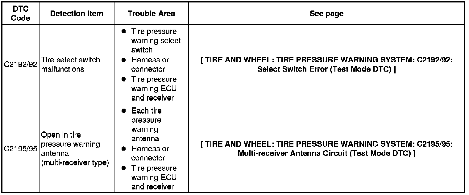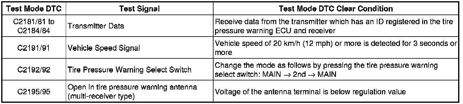 * When entering signal check mode (test mode), the tire pressure warning ECU and receiver sets all the signal check DTCs first.