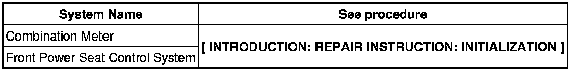 When disconnecting the cable from the negative (-) battery terminal, initialize the following systems after the cable is reconnected.