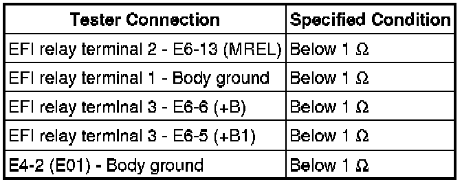 2. CHECK WIRE HARNESS (EFI RELAY - ECM, BATTERY AND BODY GROUND)