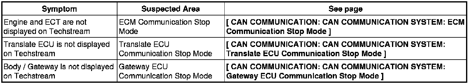 CAN COMMUNICATION: CAN COMMUNICATION SYSTEM: PROBLEM SYMPTOMS TABLE