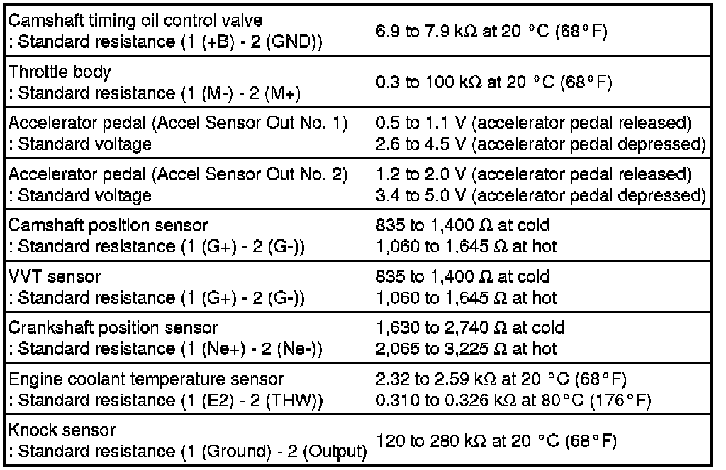 SERVICE SPECIFICATIONS: 3UZ-FE ENGINE CONTROL SYSTEM: SERVICE DATA