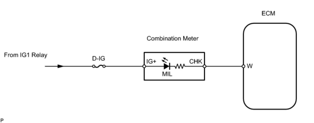 The instrument panel D-IG fuse provides the circuit with power and the ECM provides the circuit ground that illuminates the MIL.