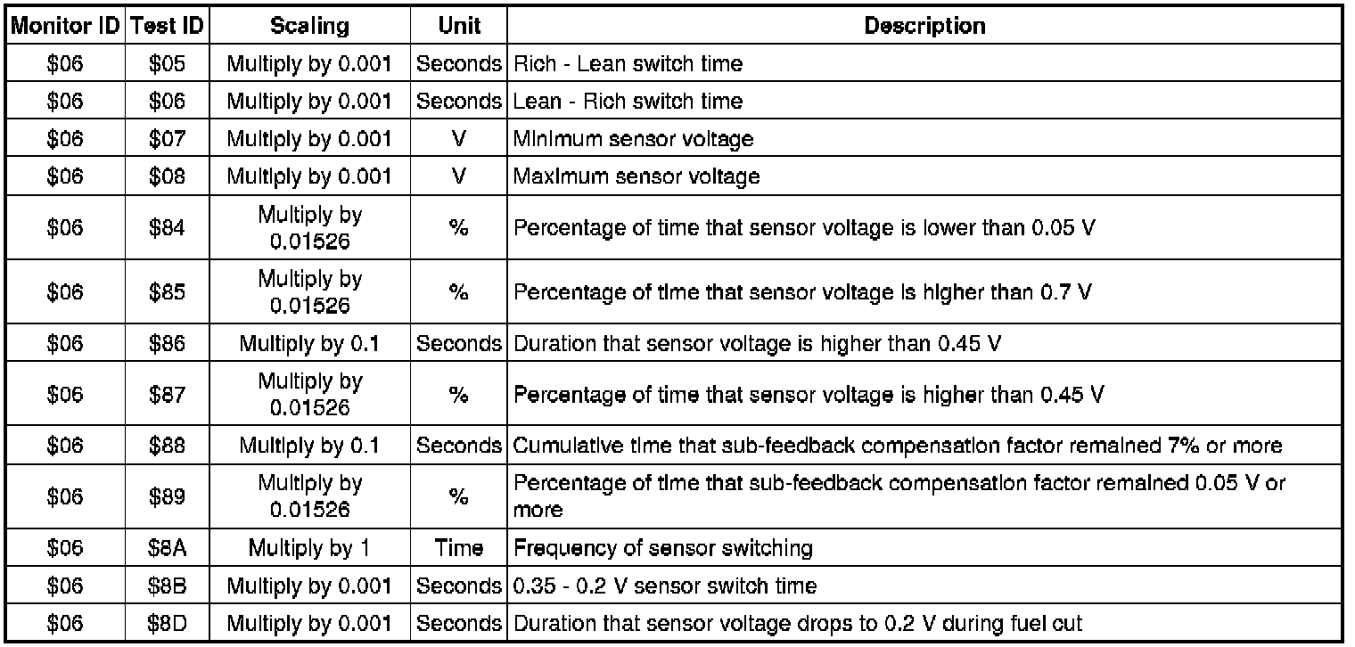 The purpose of the monitor result (mode 06) is to allow access to the results for on-board diagnostic monitoring tests of specific components/systems that are not continuously monitored. Examples are catalyst, evaporative emission (EVAP) and thermostat.