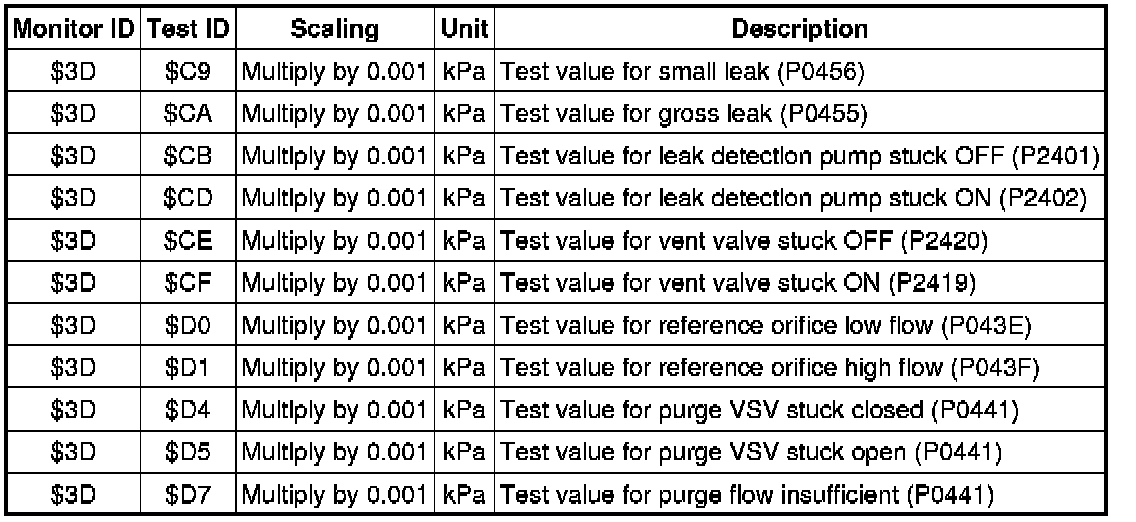 If you use a generic scan tool, multiply the test value by the scaling value listed below.
