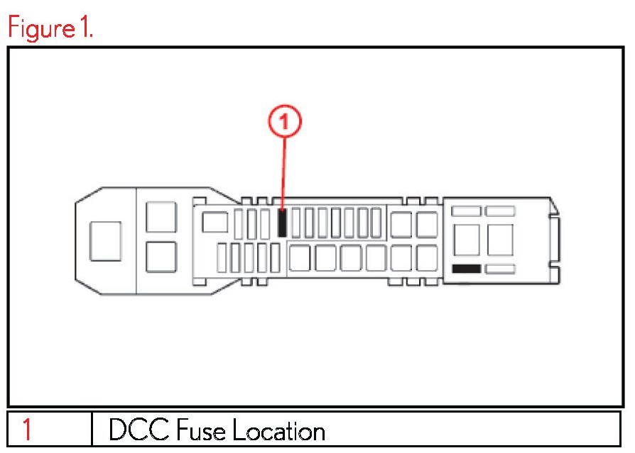 To reduce parasitic current draw from the battery during transport and storage, the D.C.C. fuse (15A) has been removed at the assembly plant. As a result of the removal of the D.C.C. fuse, the following will be inoperative: