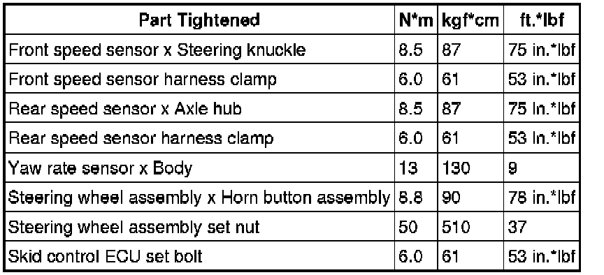 SERVICE SPECIFICATIONS: BRAKE CONTROL: TORQUE SPECIFICATIONS