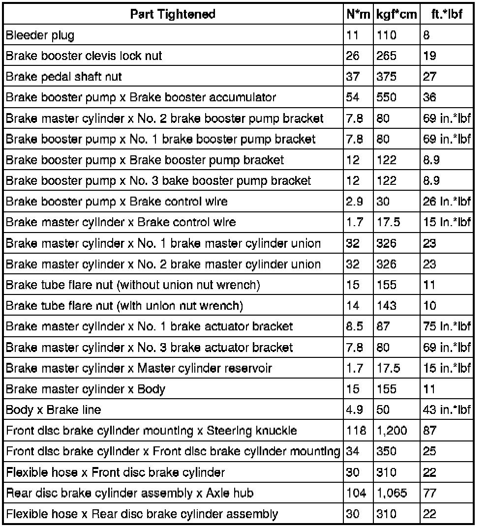 SERVICE SPECIFICATIONS: BRAKE: TORQUE SPECIFICATIONS