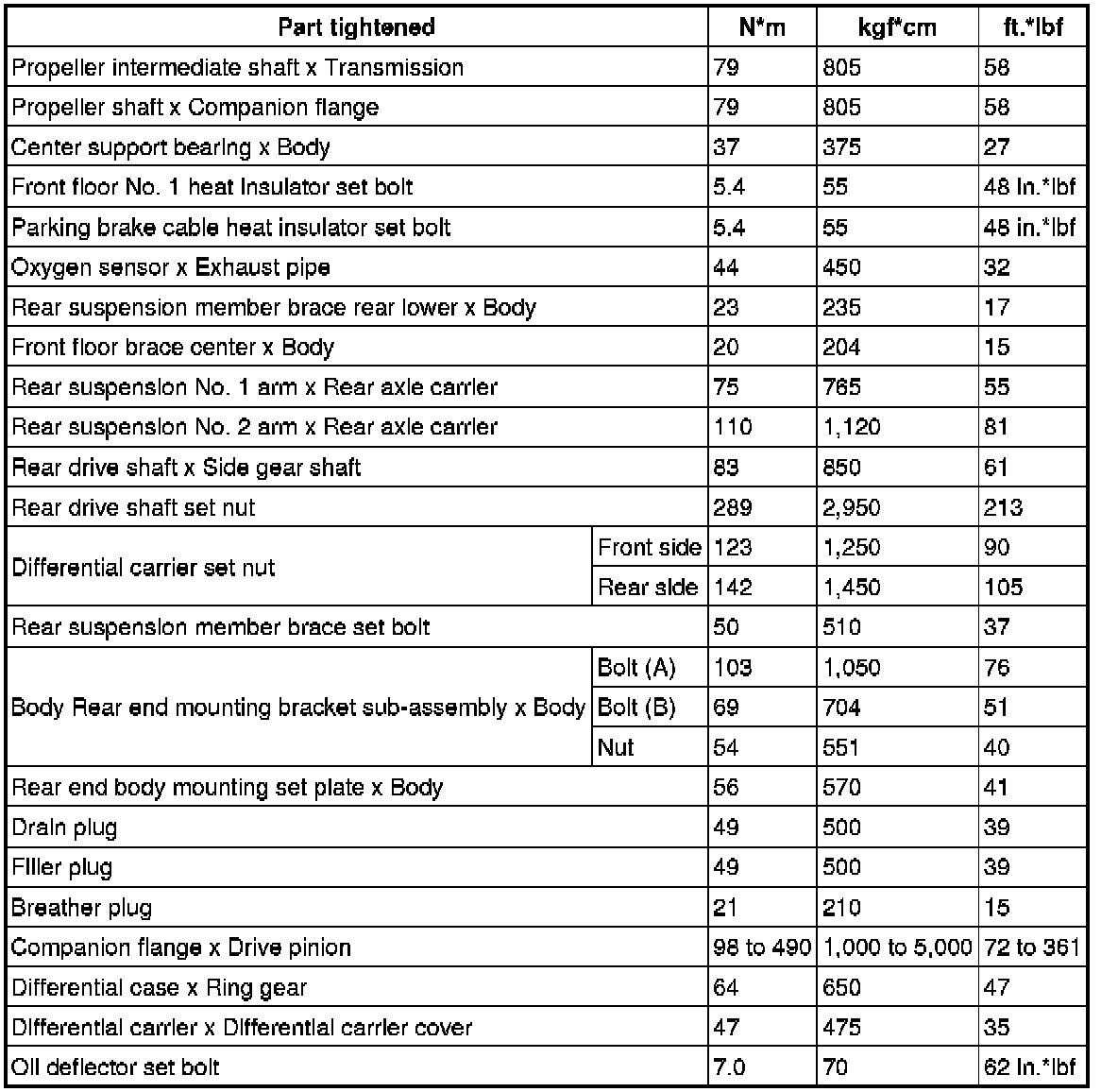 SERVICE SPECIFICATIONS: DIFFERENTIAL: TORQUE SPECIFICATIONS