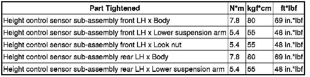 SERVICE SPECIFICATIONS: LIGHTING: TORQUE SPECIFICATIONS