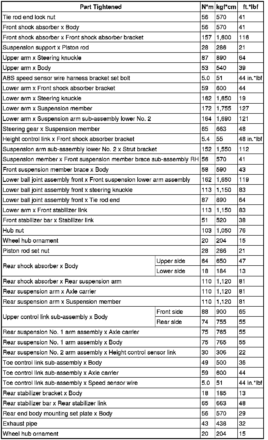 : TORQUE SPECIFICATIONS