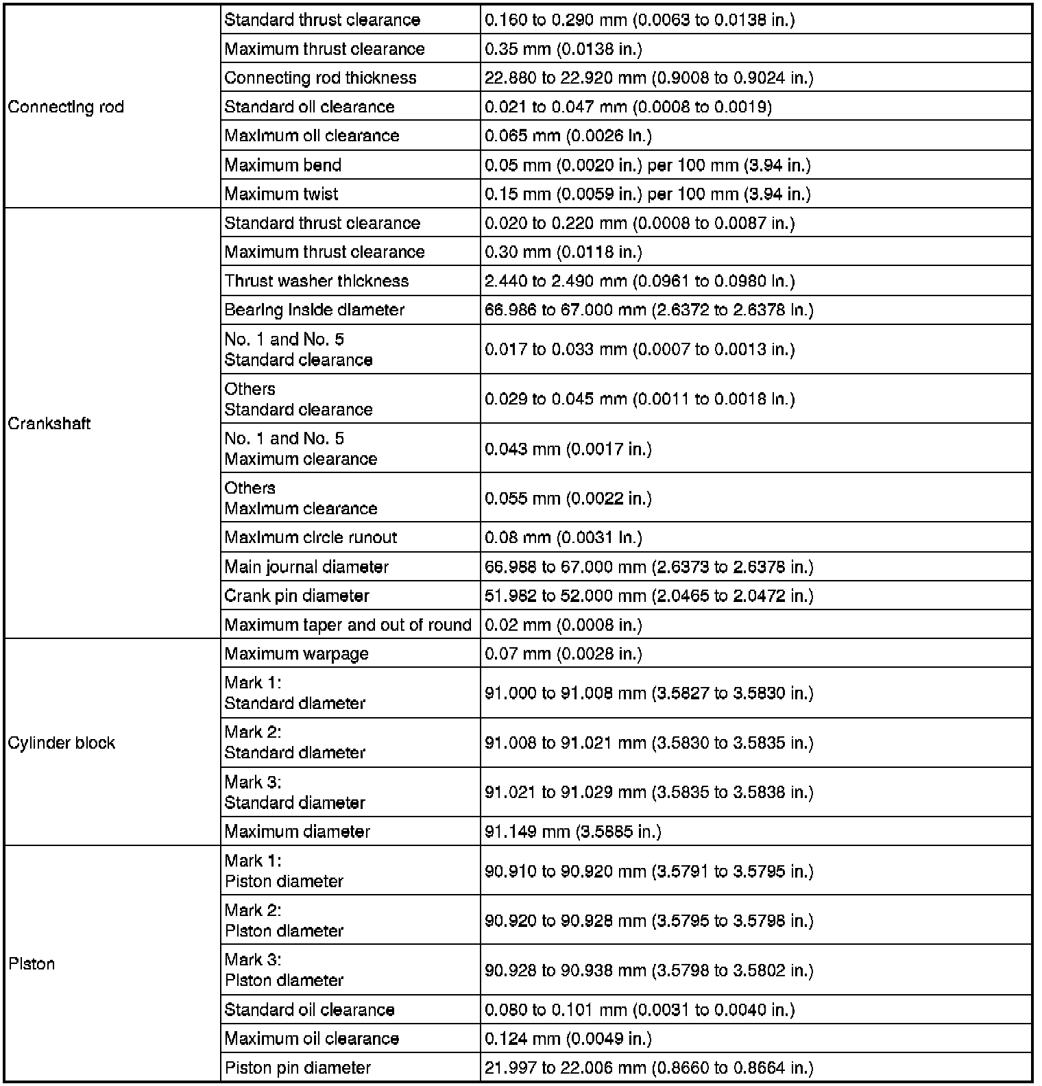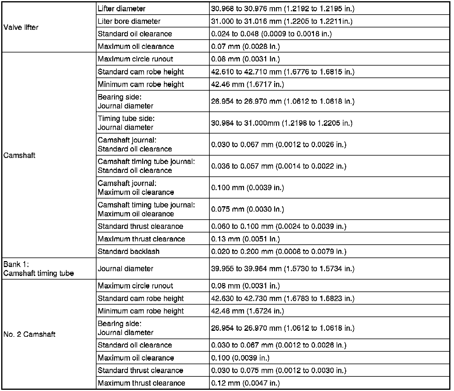 SERVICE SPECIFICATIONS: 3UZ-FE ENGINE MECHANICAL: SERVICE DATA