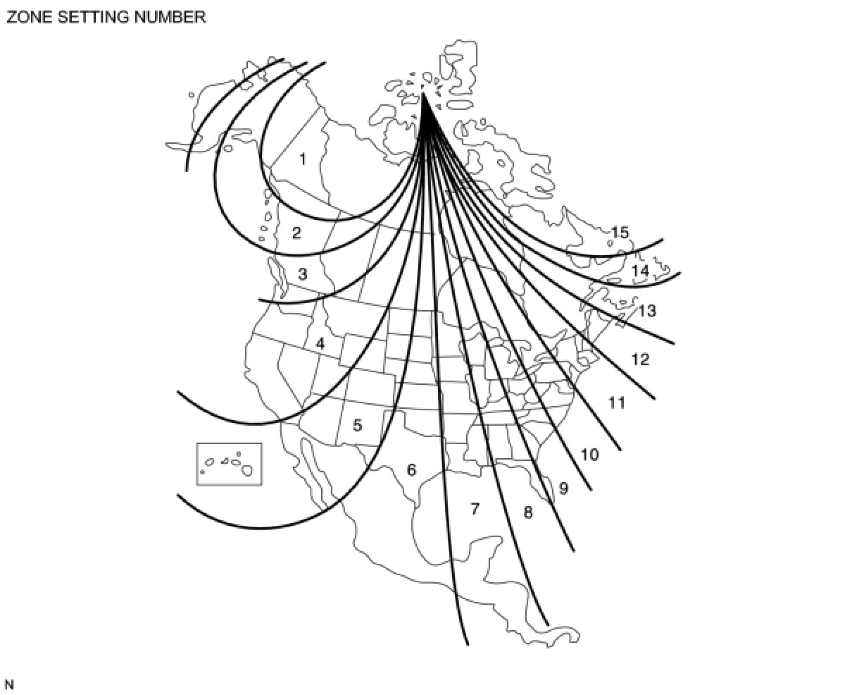 (b) Compass function calibration is necessary when: 1) purchasing a vehicle, 2) disconnecting and reconnecting the cable from the negative (-) battery terminal, 3) replacing a battery, 4) driving the vehicle out of the numbered set zone (see the zone map below, and 5) placing magnetic or metal objects on or near the accessory meter (multi-display).