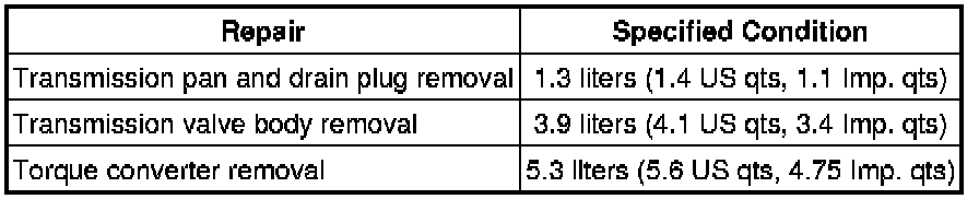 (e) Fill the transmission with the amount of fluid listed in the table below.