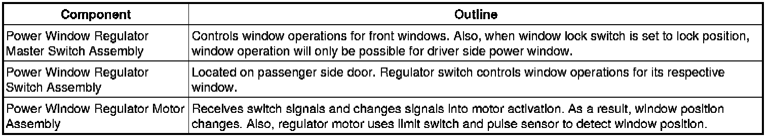 WINDSHIELD / WINDOWGLASS: POWER WINDOW CONTROL SYSTEM: SYSTEM DESCRIPTION