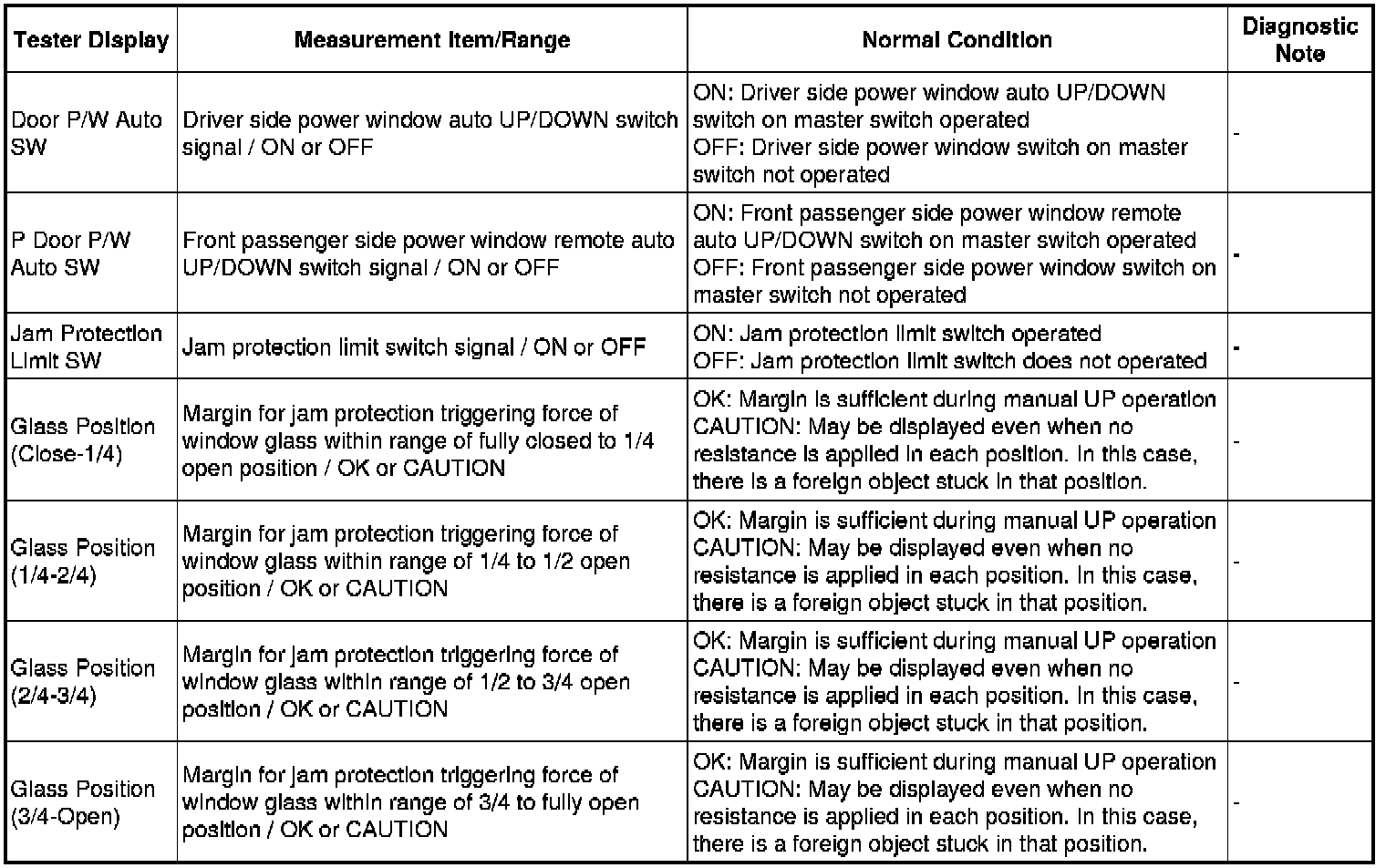 WINDSHIELD / WINDOWGLASS: POWER WINDOW CONTROL SYSTEM: DATA LIST / ACTIVE TEST