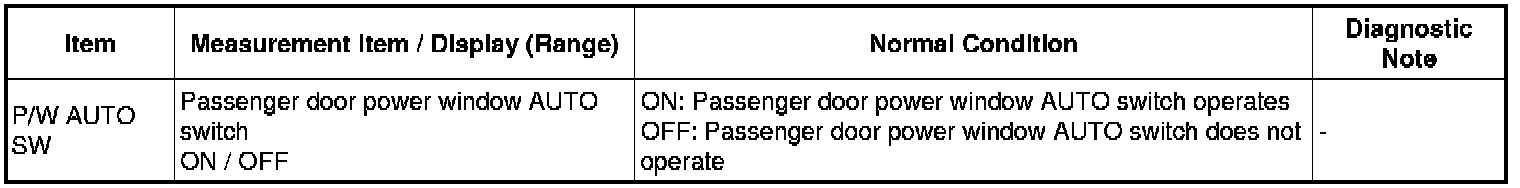 - Front Passenger Side Power Window does not Operate with Front Passenger Side Power Window Switch