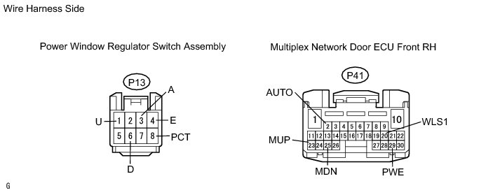 7. CHECK WIRE HARNESS (DOOR ECU FRONT RH - POWER WINDOW MOTOR)