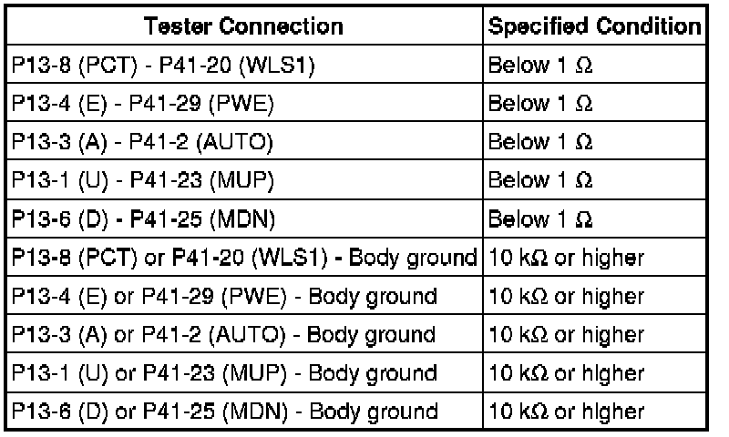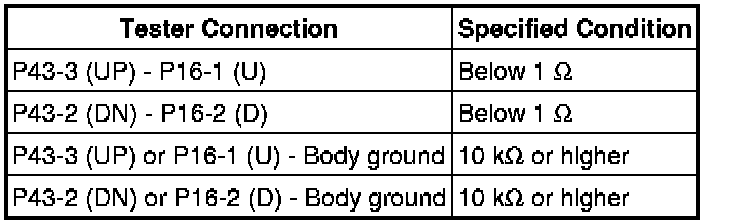 NG -- INSPECT POWER WINDOW REGULATOR SWITCH ASSEMBLY